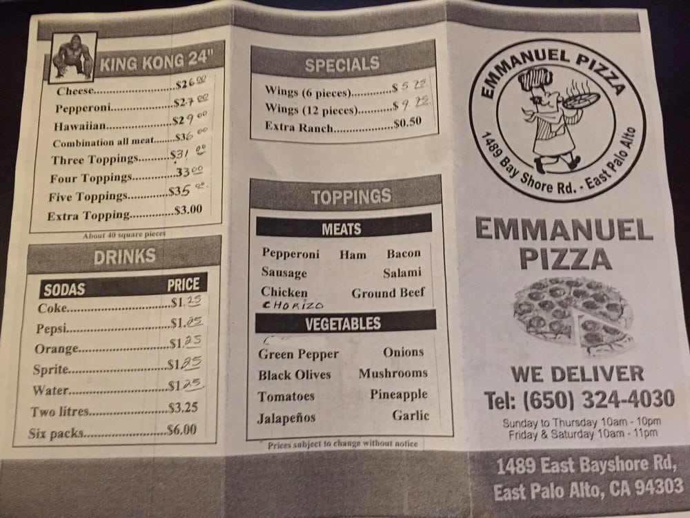 Welcome to the delightful world of Emmanuel's Pizza & Bakery, where culinary passion meets community spirit at 1435 E Bayshore Rd, East Palo Alto, CA. This local gem is not just a bakery; it’s a haven for pizza lovers and a place where you can indulge in a wide array of delicious baked goods. With a phone number reaching them at (650) 324-4030, they make it easy for you to discover your new favorite dish.